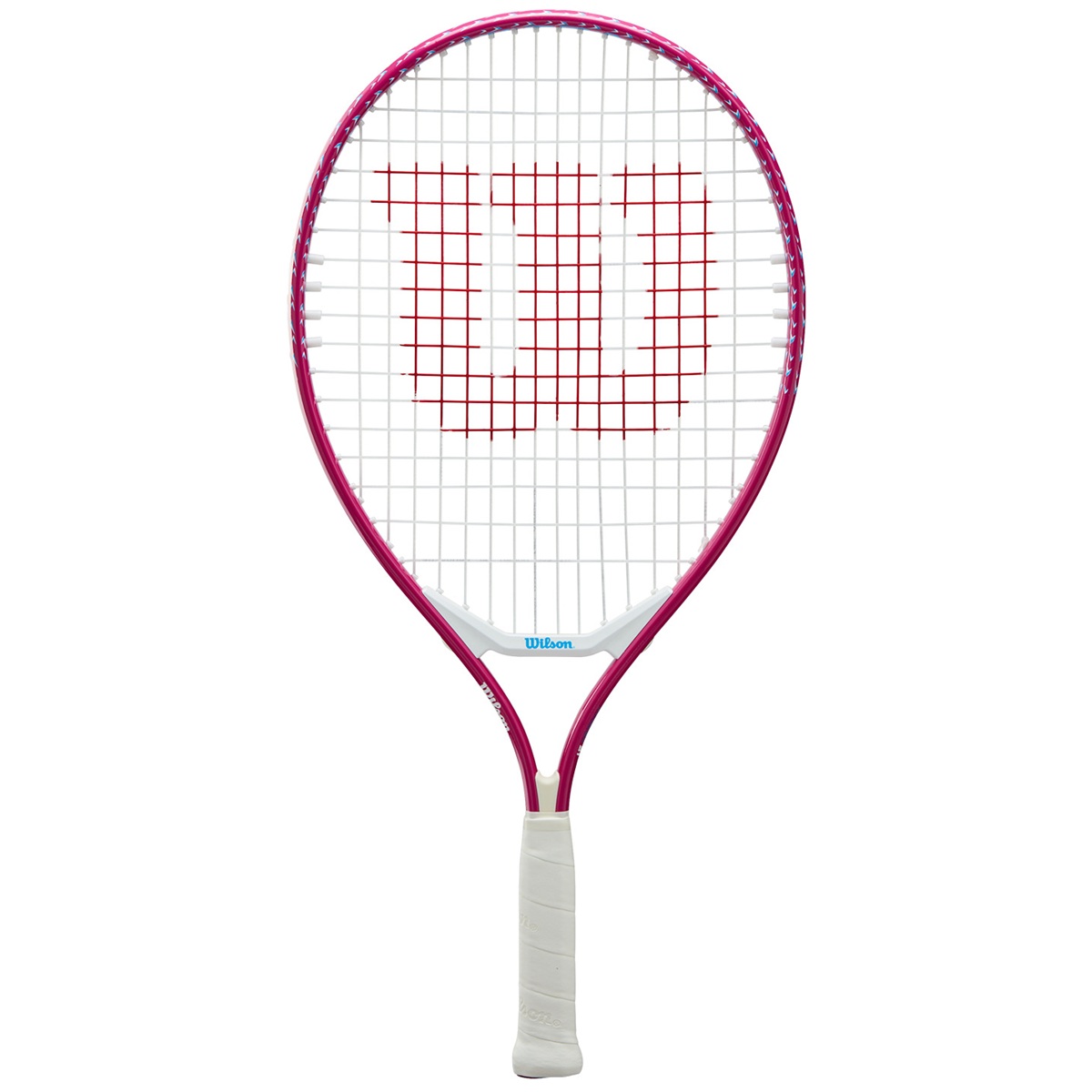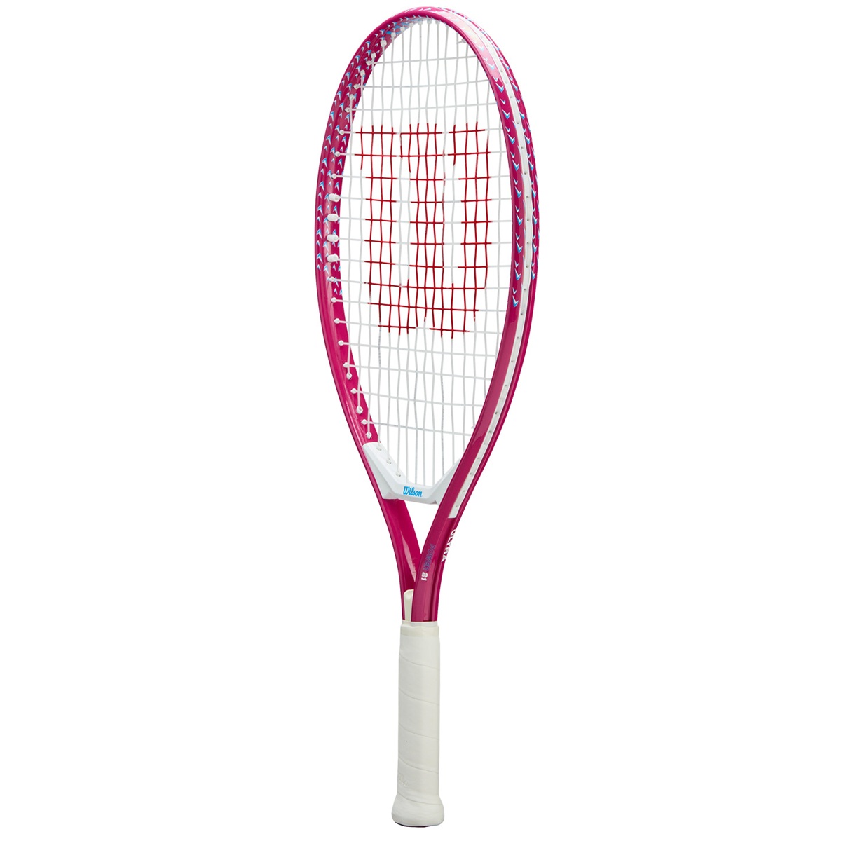 The Wilson Ultra Power 21 Inch Junior Tennis Racquet (Pink) has a flashing a vivid design that is sure to light up the court, this racquet comes pre-strung and equipped with a bumper guard to help minimize damage when the racquet contacts the court surface. Created specifically for younger players aged 5 to 6 years old starting to learn the game, the Ultra Power showcases a fun design while also providing players with everything needed to pick up the sport. Technologies in the frame make it stable, powerful, and easily maneuverable when hitting shots. It also comes pre-strung, so there's no reason not to take your racket wherever you go!