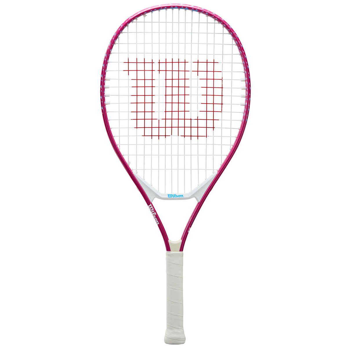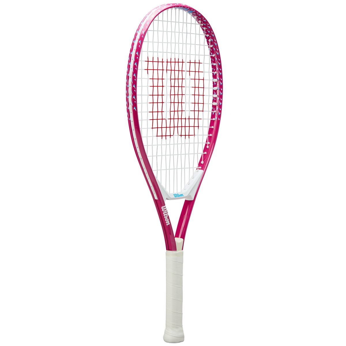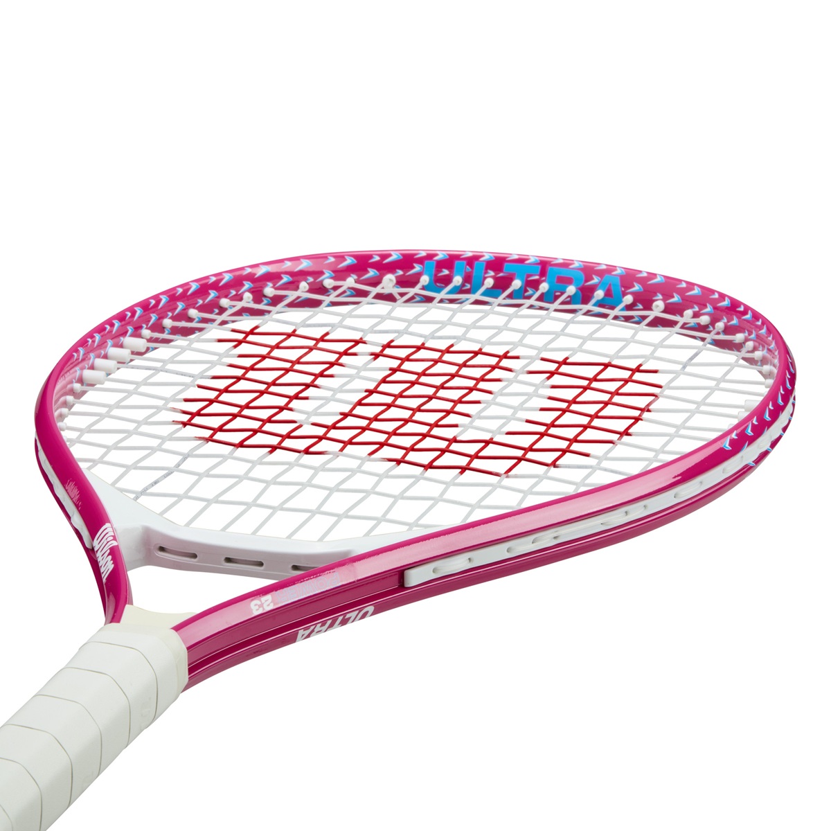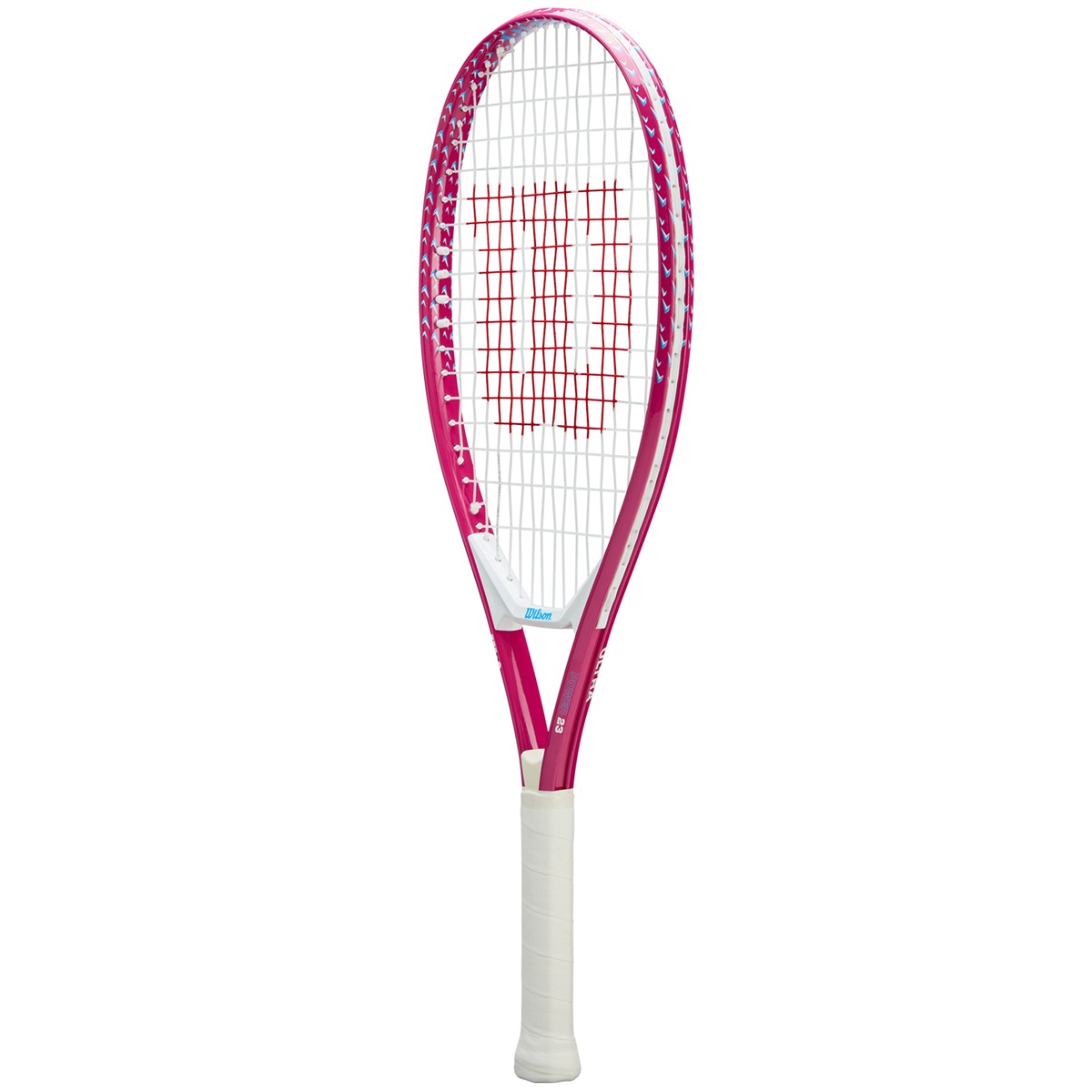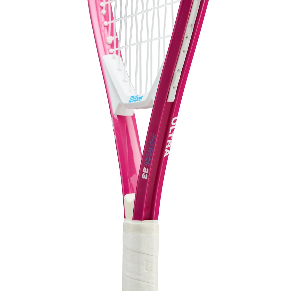 The Wilson Ultra Power 23 Inch Junior Tennis Racquet (Pink) has a vivid design that is sure to light up the court. This racquet comes pre-strung and equipped with a bumper guard to help minimize damage when the racquet contacts the court surface. Created specifically for younger players aged 7 to 8 years old starting to learn the game, the Ultra Power showcases a fun design while also providing players with everything needed to pick up the sport. Technologies in the frame make it stable, powerful, and easily maneuverable when hitting shots. It also comes pre-strung, so there's no reason not to take your racket wherever you go!