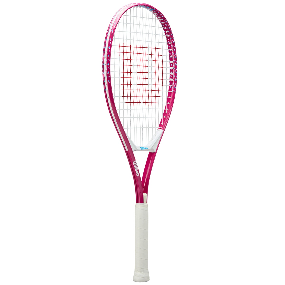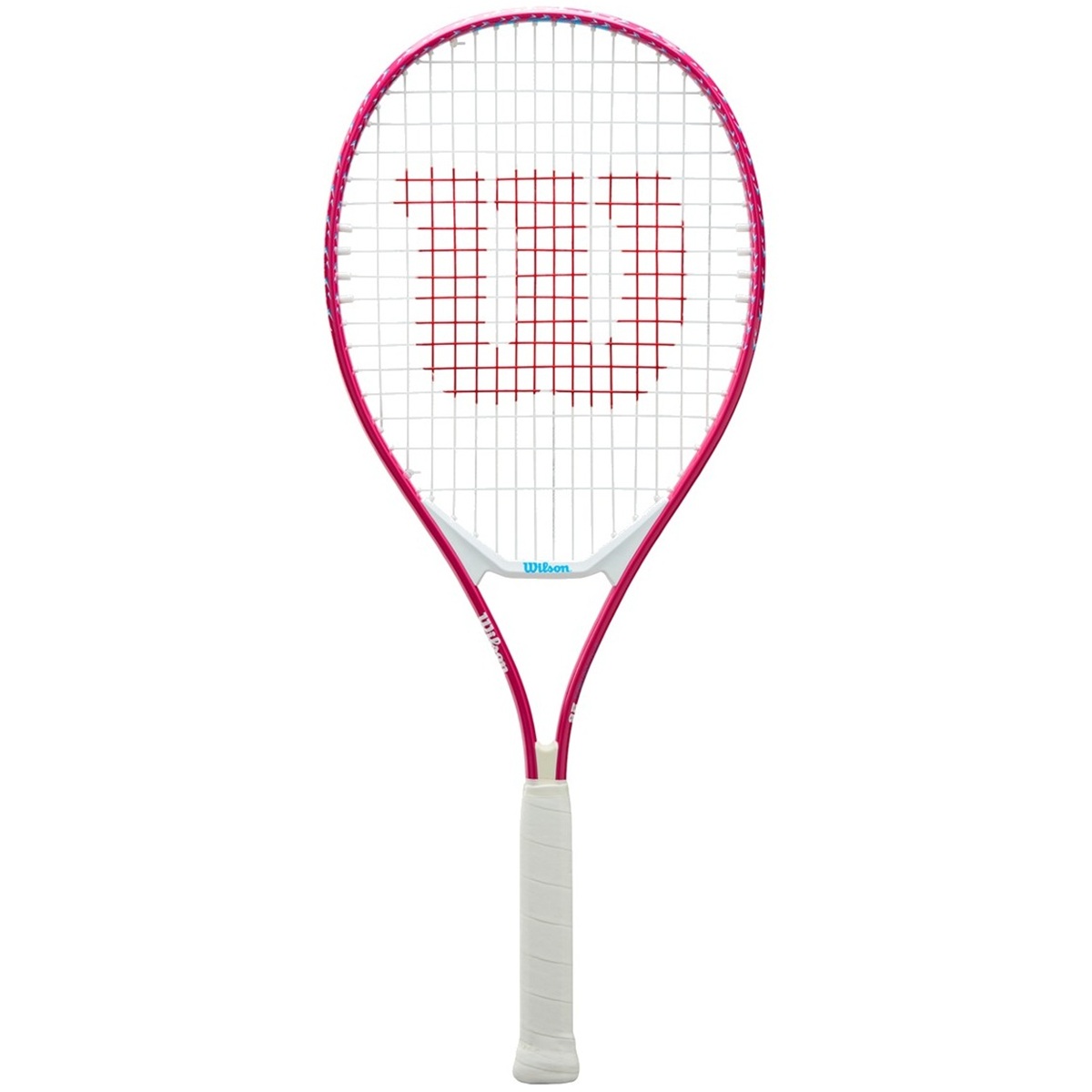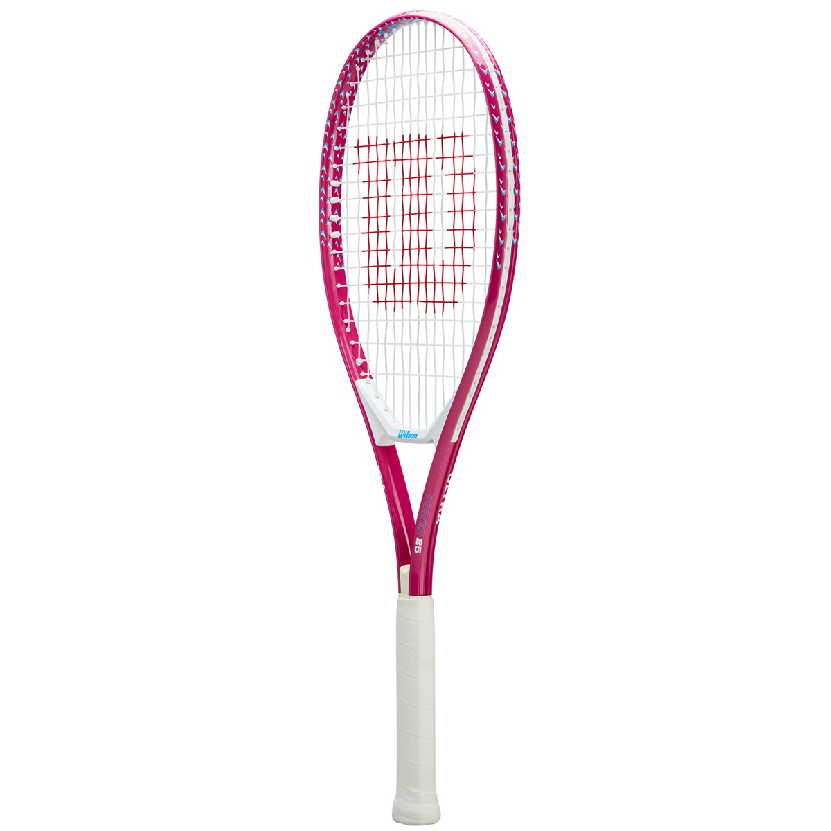 The Wilson Ultra Power 25 Inch Junior Tennis Racquet (Pink) has a flashing a vivid design that is sure to light up the court, this racquet comes pre-strung and equipped with a bumper guard to help minimize damage when the racquet contacts the court surface. Created specifically for younger players aged 9 to 10 years old starting to learn the game, the Ultra Power showcases a fun design while also providing players with everything needed to pick up the sport. Technologies in the frame make it stable, powerful, and easily maneuverable when hitting shots. It also comes pre-strung, so there's no reason not to take your racket wherever you go!