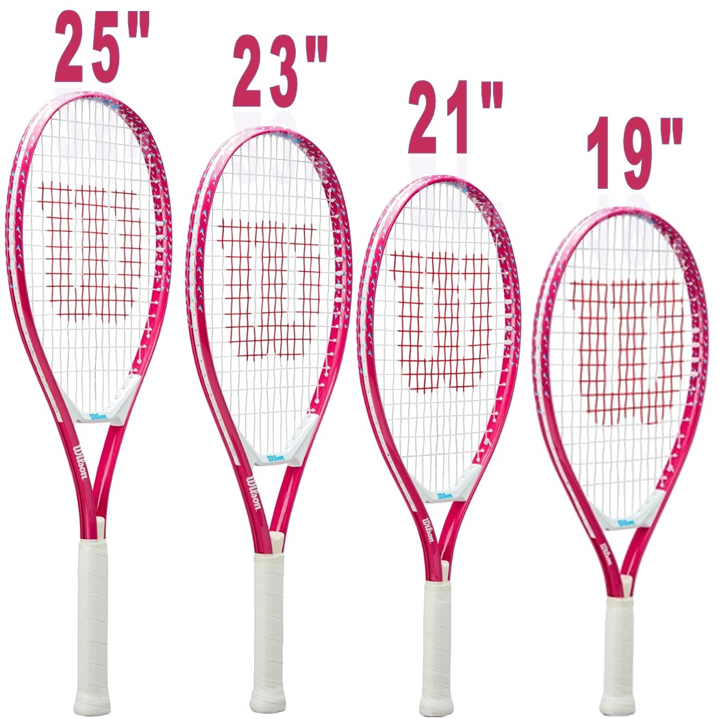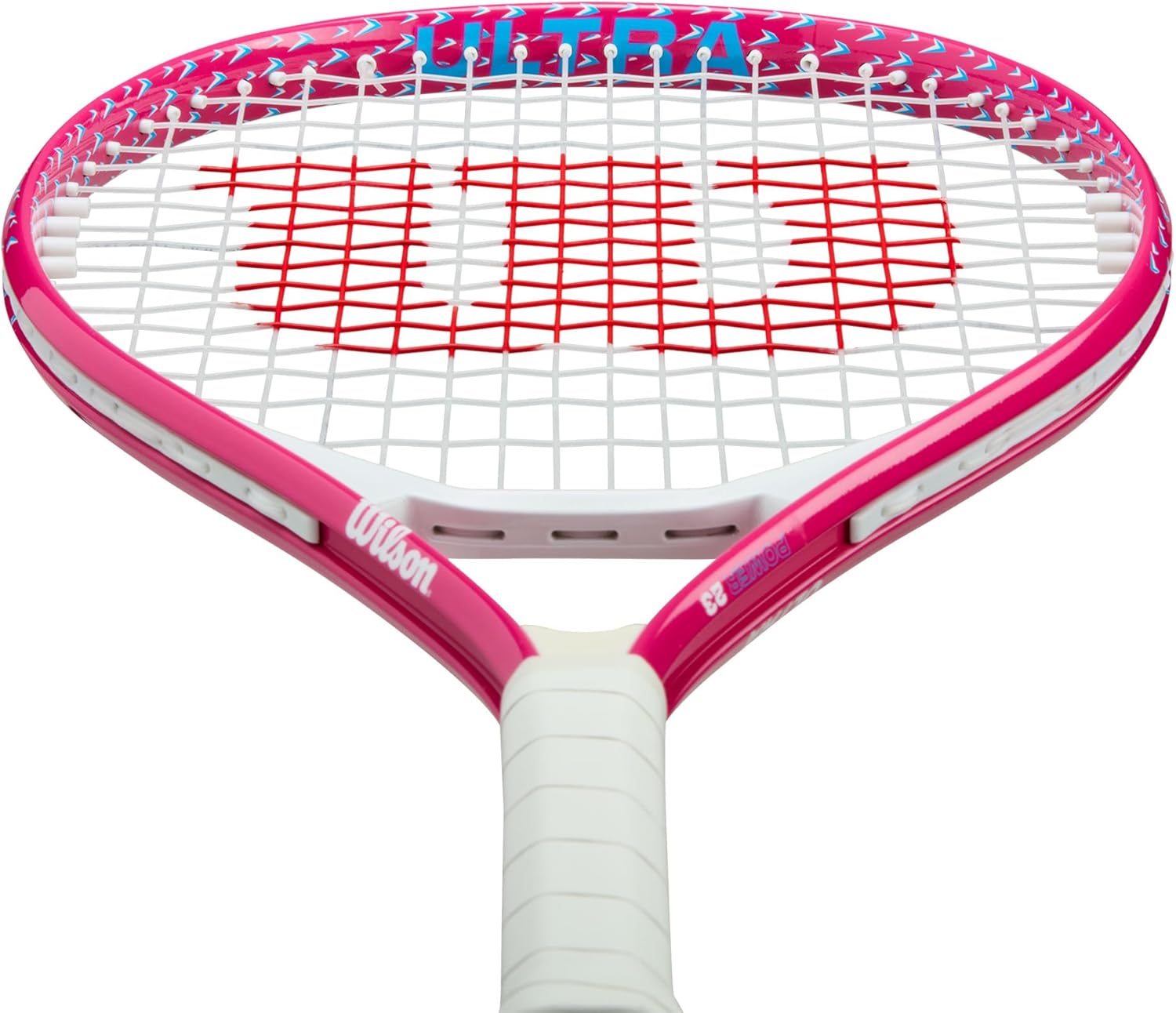 This tennis starter set includes (1) Wilson Ultra Power Jr Tennis Racquet (Pink) in your choice of frame length, (1) Wilson Advantage 2.5 Tennis Bag (Pink), and 3 pink tennis balls.