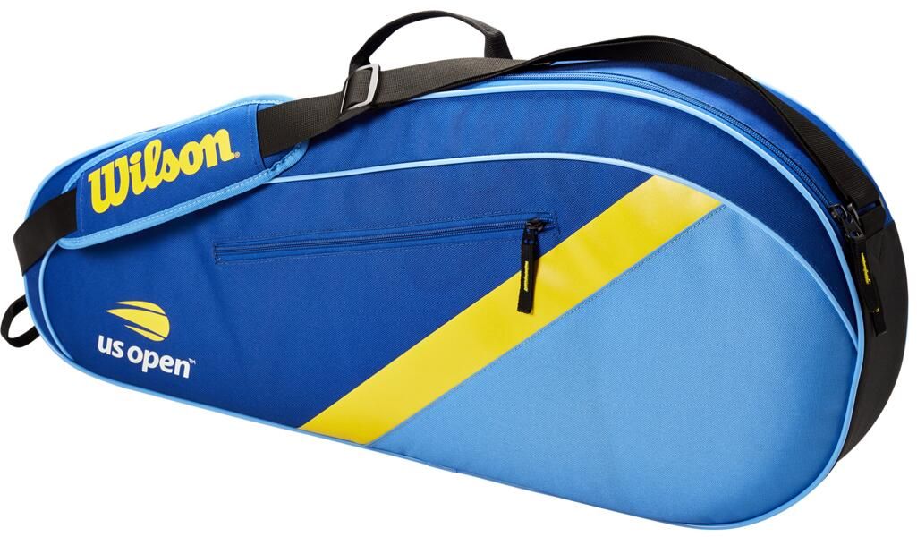 The Wilson US Open Triple tennis bag has the updated US Open logo design and can easily hold up to 3 tennis racquets along with gear for your match or practice. This 3 pack tennis bag has an accessory pocket for gear, and carrying handle that makes it easy to carry essentials.
