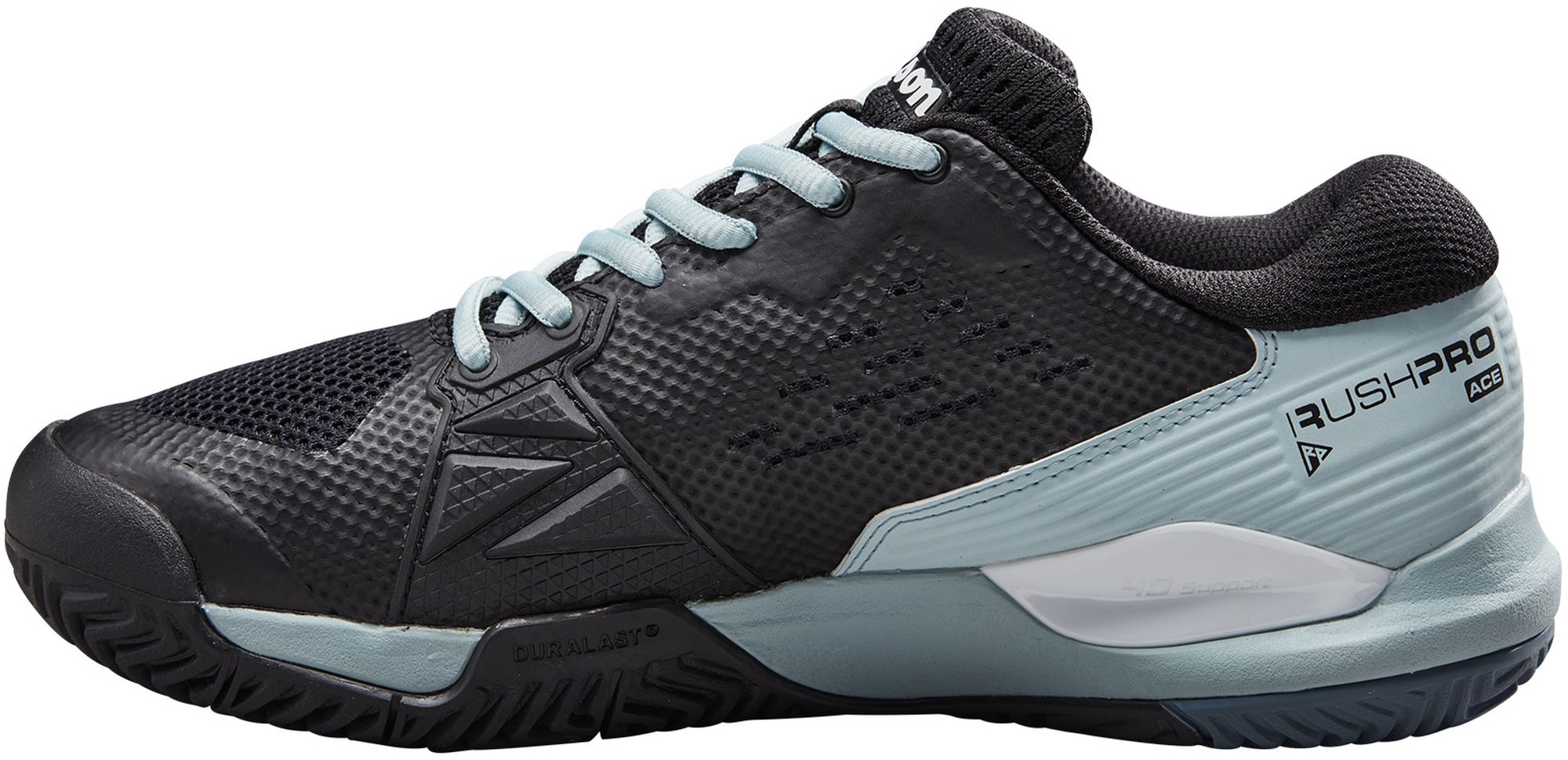 The Wilson Women’s Rush Pro Ace Tennis Shoes are asymmetrical and elongated medial side TPU heel counter designed specifically for women provides higher levels of stability, arch support and control.