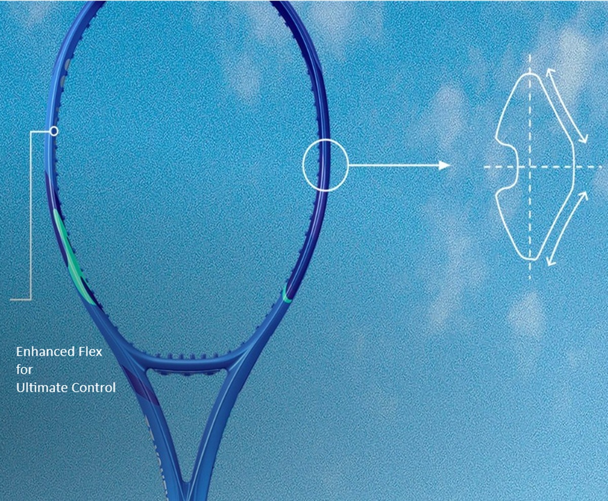 Vibration Dampening Mesh (VDM) - designed to give players more spin, control, and feel. The shaft flexes at impact, increasing dwell time and minimizing vibrations.