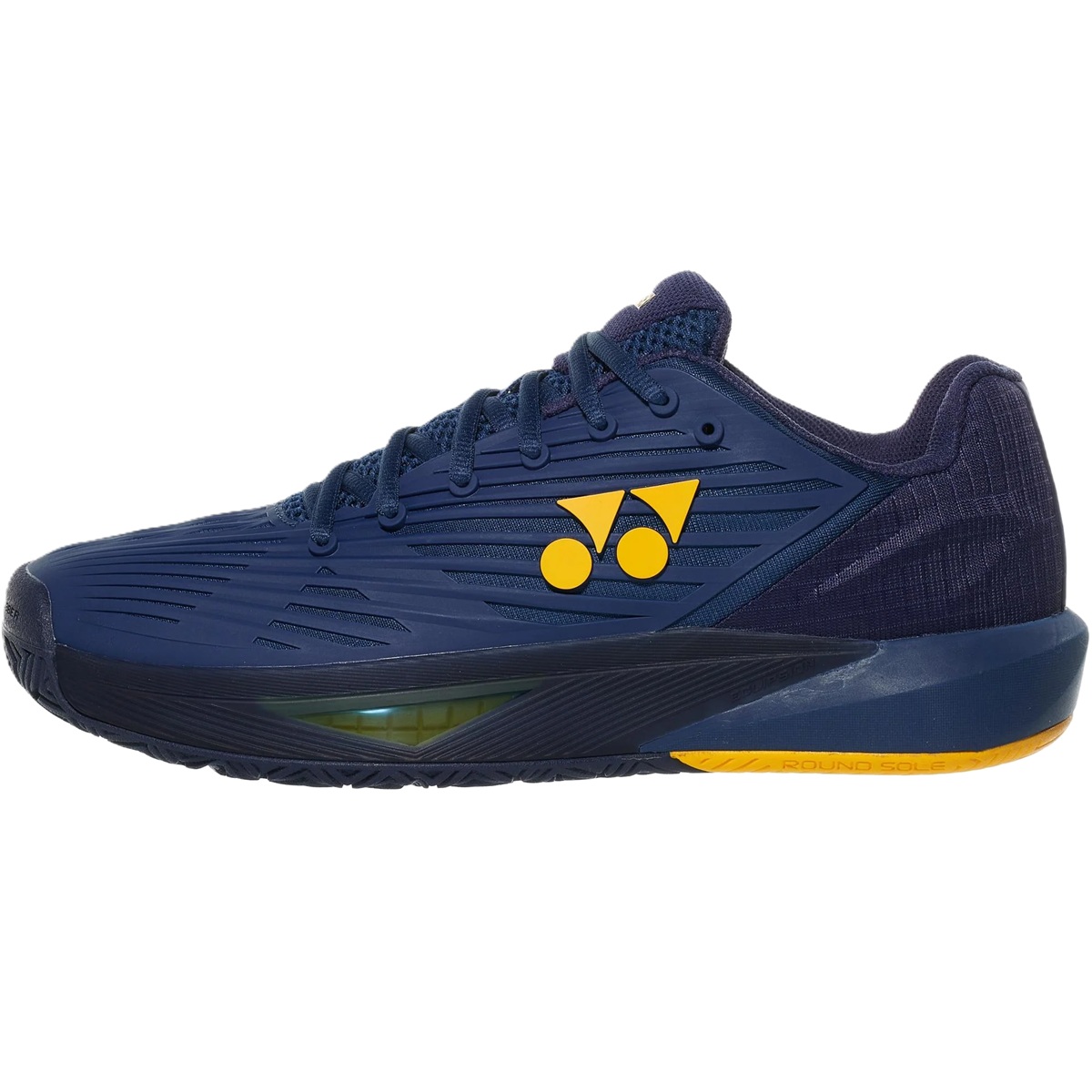 The Yonex Men's Power Cushion Eclipsion 5 Tennis Shoes (Ink Blue) is part of the ECLIPSION 5 series of new tennis shoes for intermediate and advanced players. This footwear was developed to provide superior support for a player’s intense and dynamic footwork during play, including sudden stops and changes in direction that are core to playing tennis. With enhanced stability and fit, the ECLIPSION 5 tennis shoes are designed to help players feel more confident on the court.
