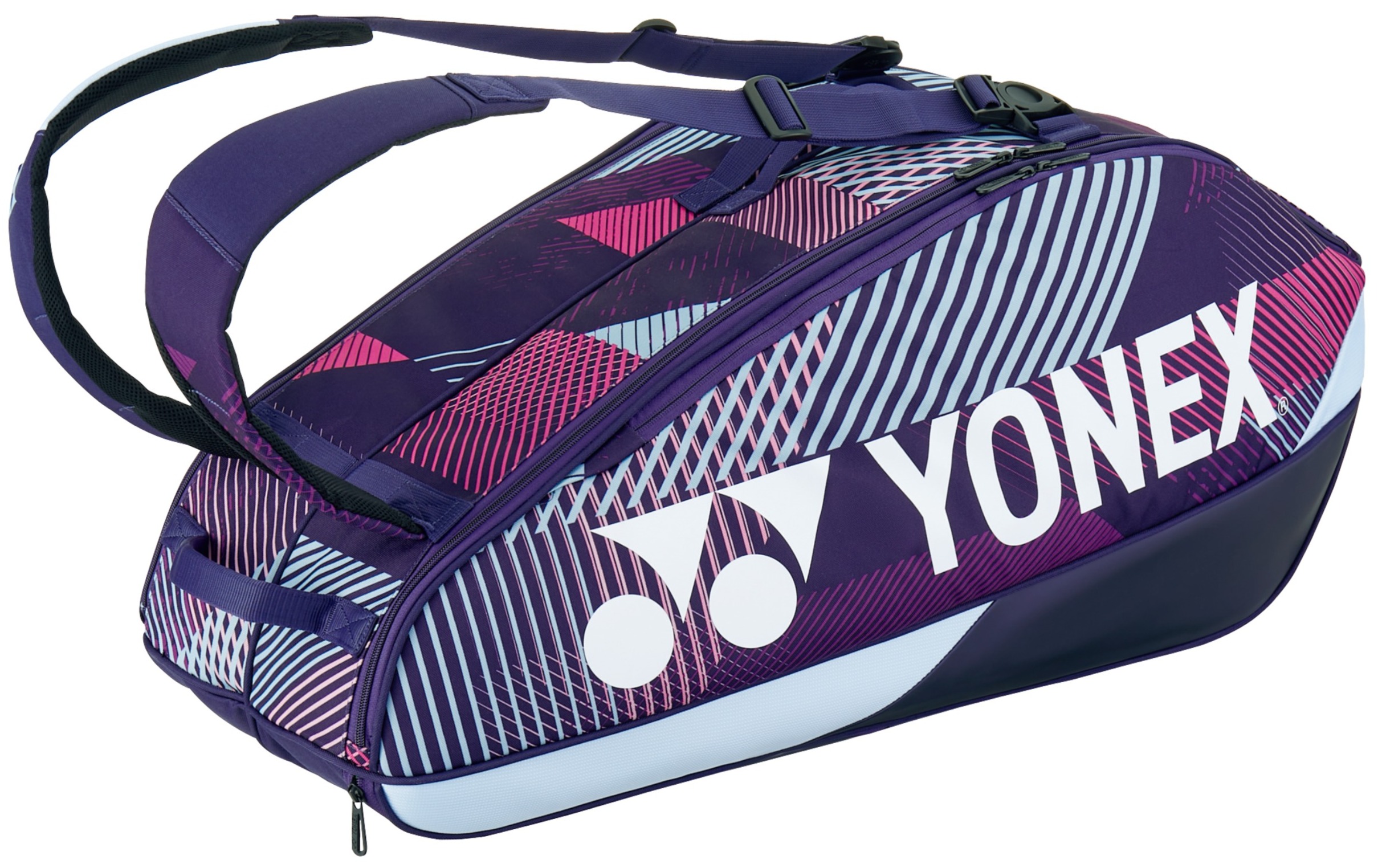 The Yonex Pro 6 Racquet Tennis Bag (Grape) accommodates up to six racquets and has several places to store your court accessories, including a shoe pocket.
