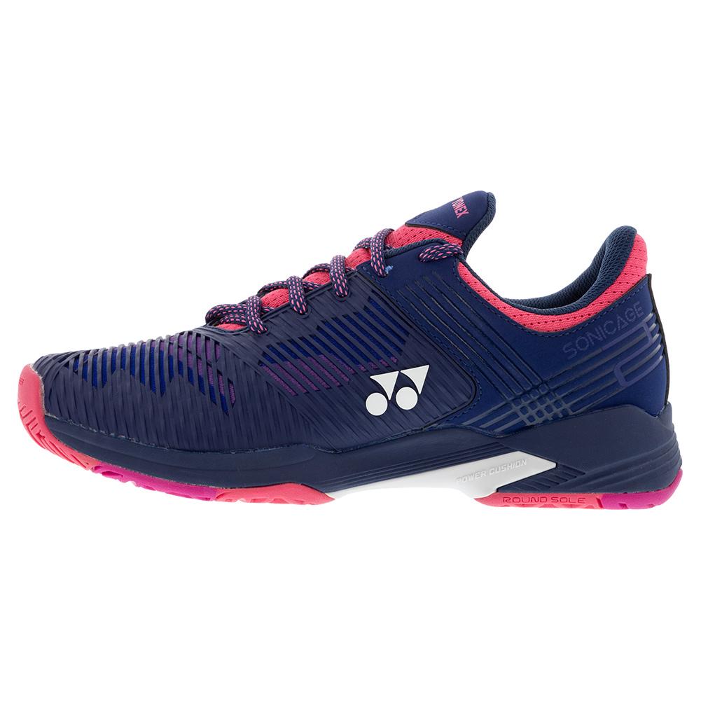 Yonex Women's Power Cushion Sonicage 2 Tennis Shoes (Navy/Pink)